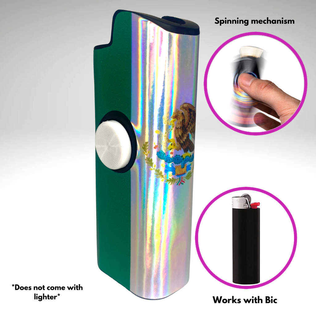 FLKR LYTR: Flicker lighter Mexican Flag! Gift you and your friend the world's first spinning lighter case- Does not come with lighter. The FLKR LYTR works with a standard Bic lighter, insert the lighter from the bottom of the FLKR and push till firm. Then Spin it, Spark it, Love it!